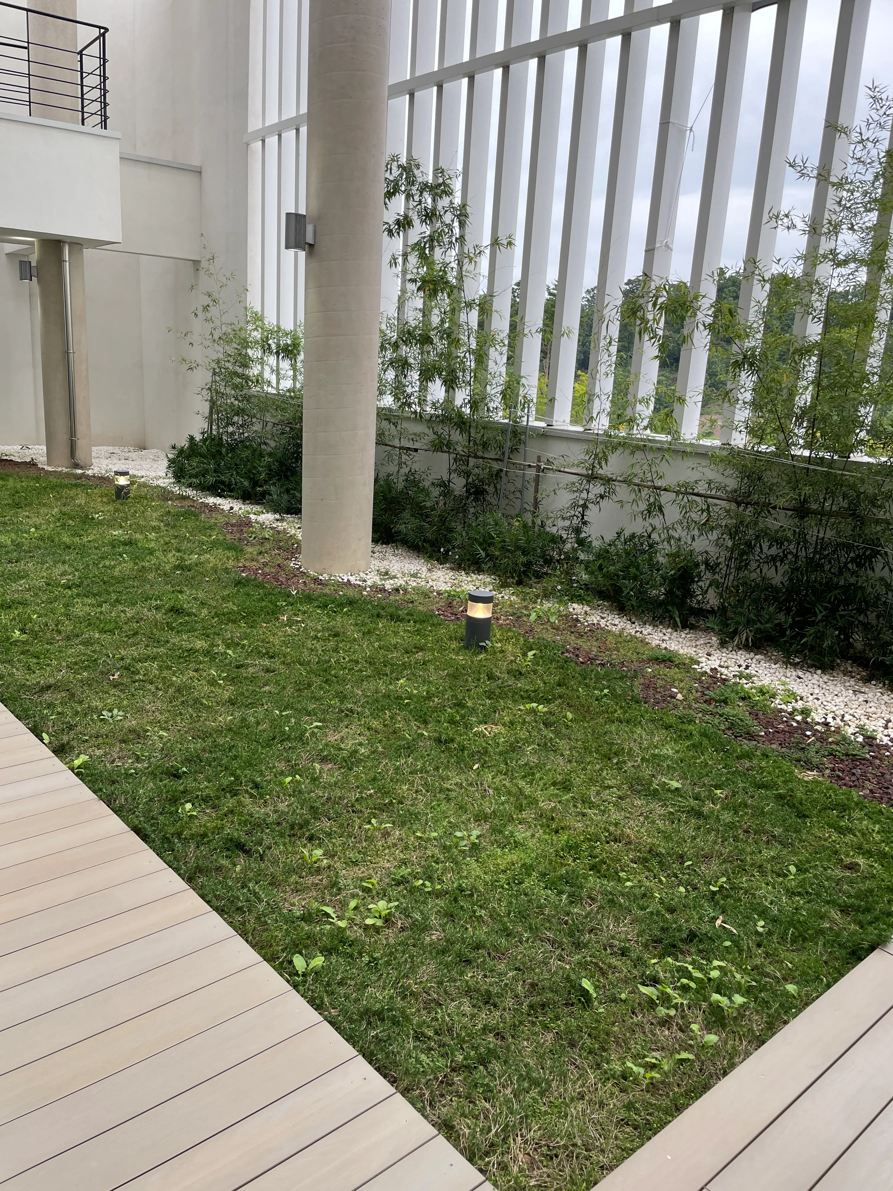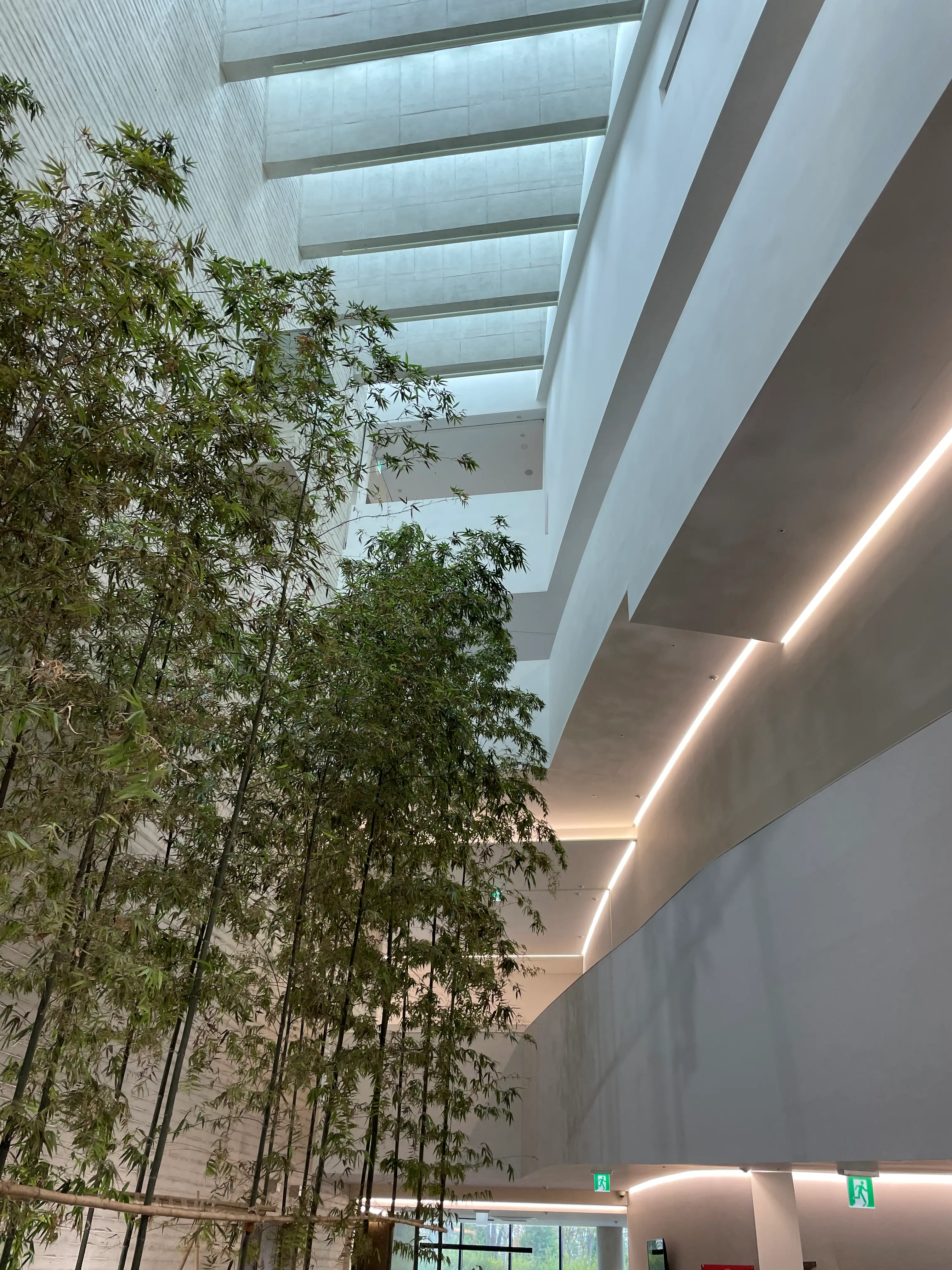 힐링숲정원은 건물 전체를 아우르는 높이의 대나무가 조성되어 있고, 그 뒷편으로는 누울 수 있게 빈백이 있습니다.