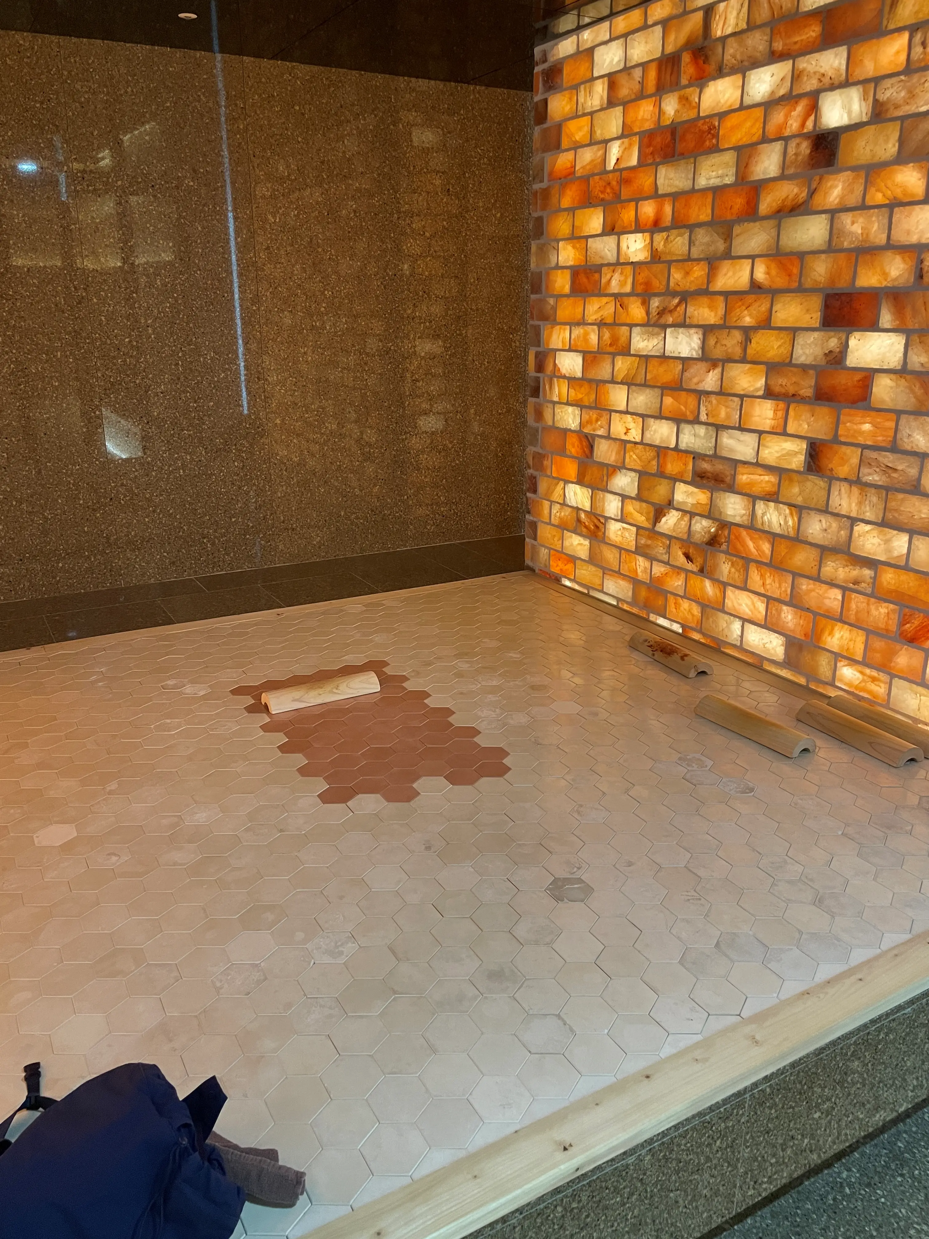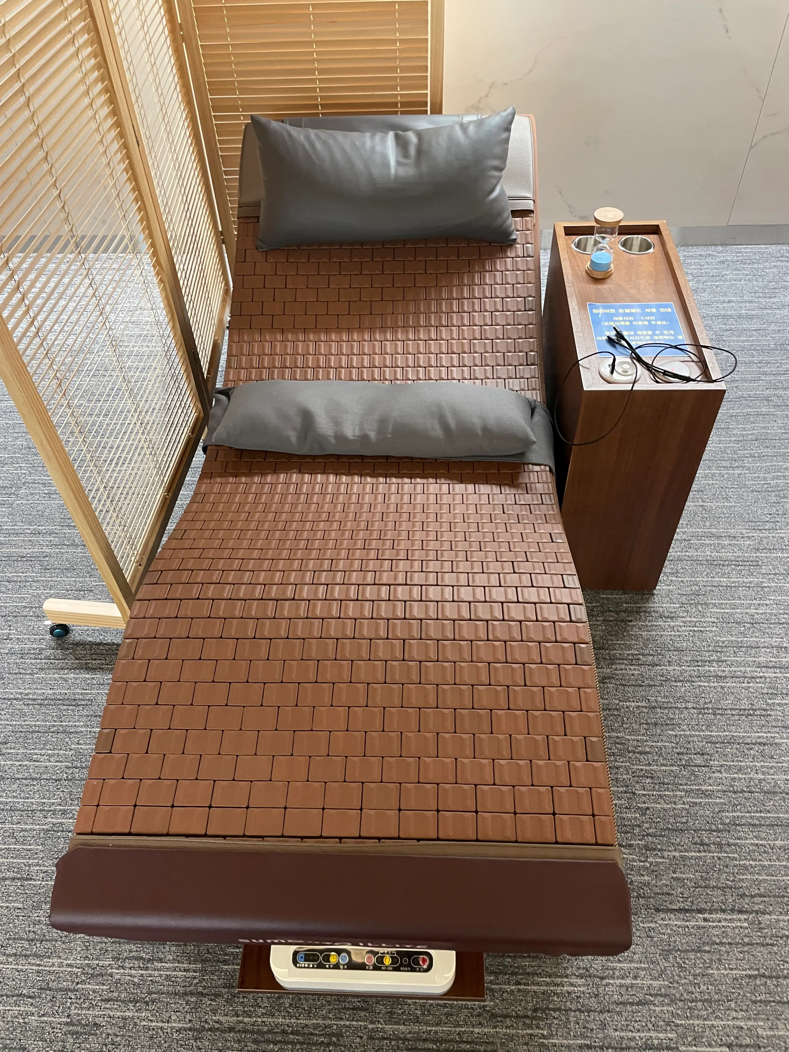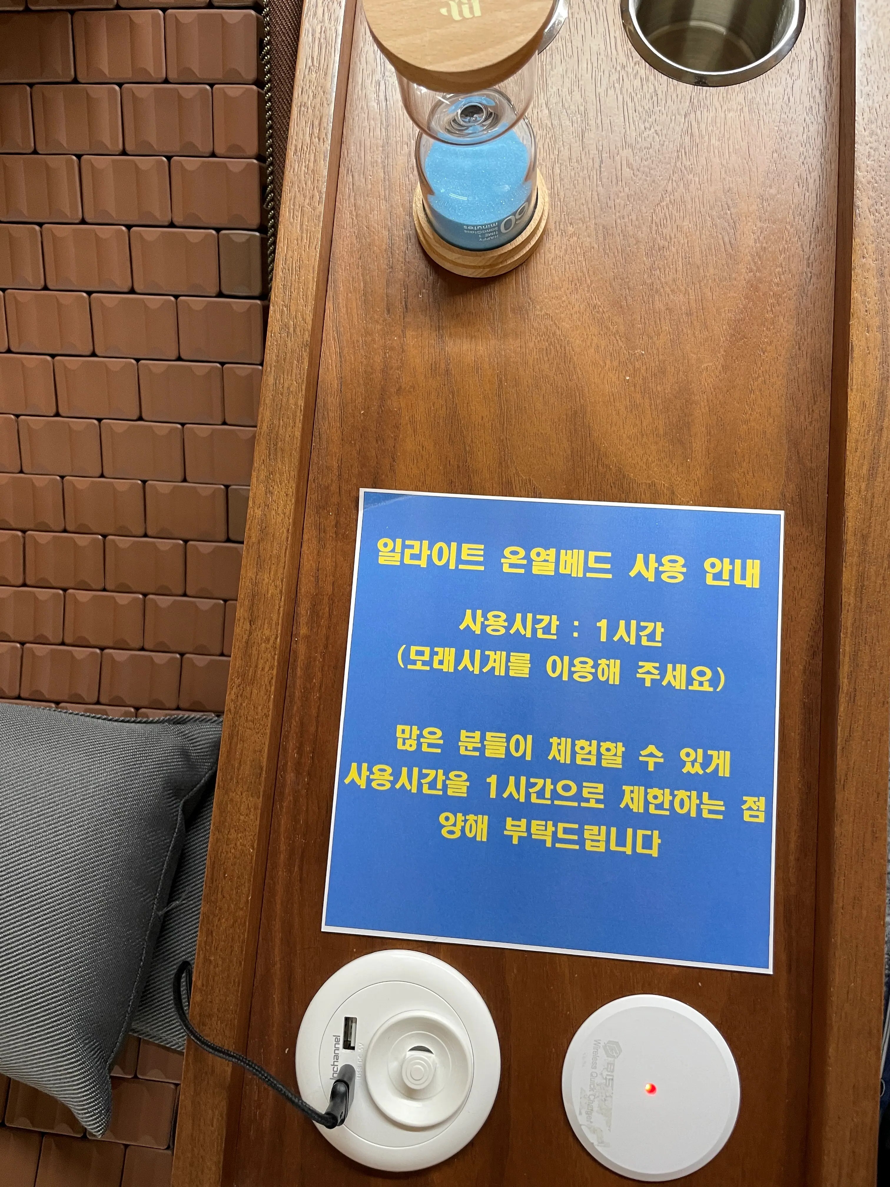 두번째 사진은 찜질을 할 수 있는 온돌방입니다. 이 주변에 일라이트라고 하는 광물이 나오는 곳이라서, 이 광물을 이용한 것 같습니다.