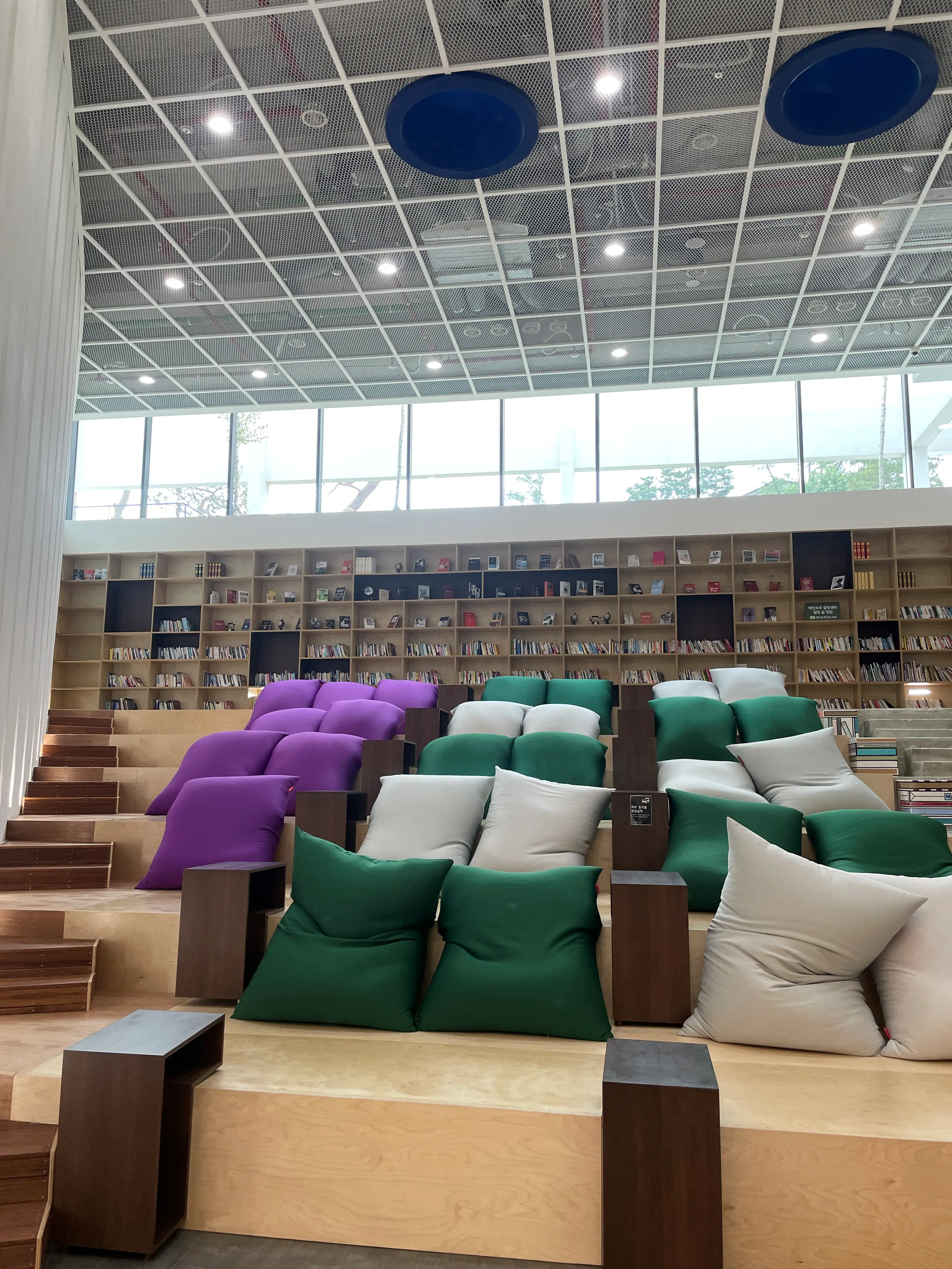 이 곳에도 중간중간 밖을 보면서 쉴 수 있도록 조그만 빈백과 테이블이 놓여있습니다.