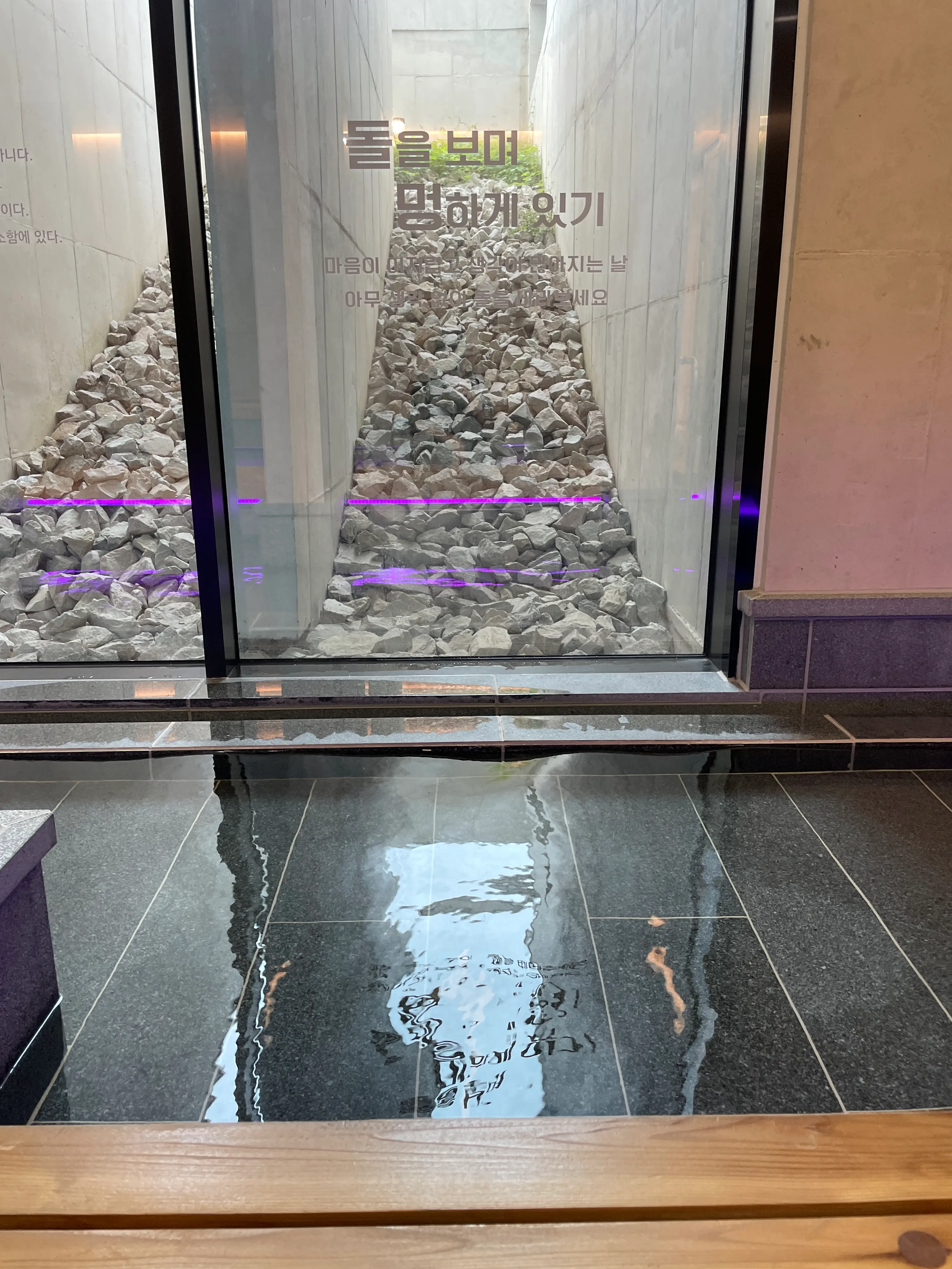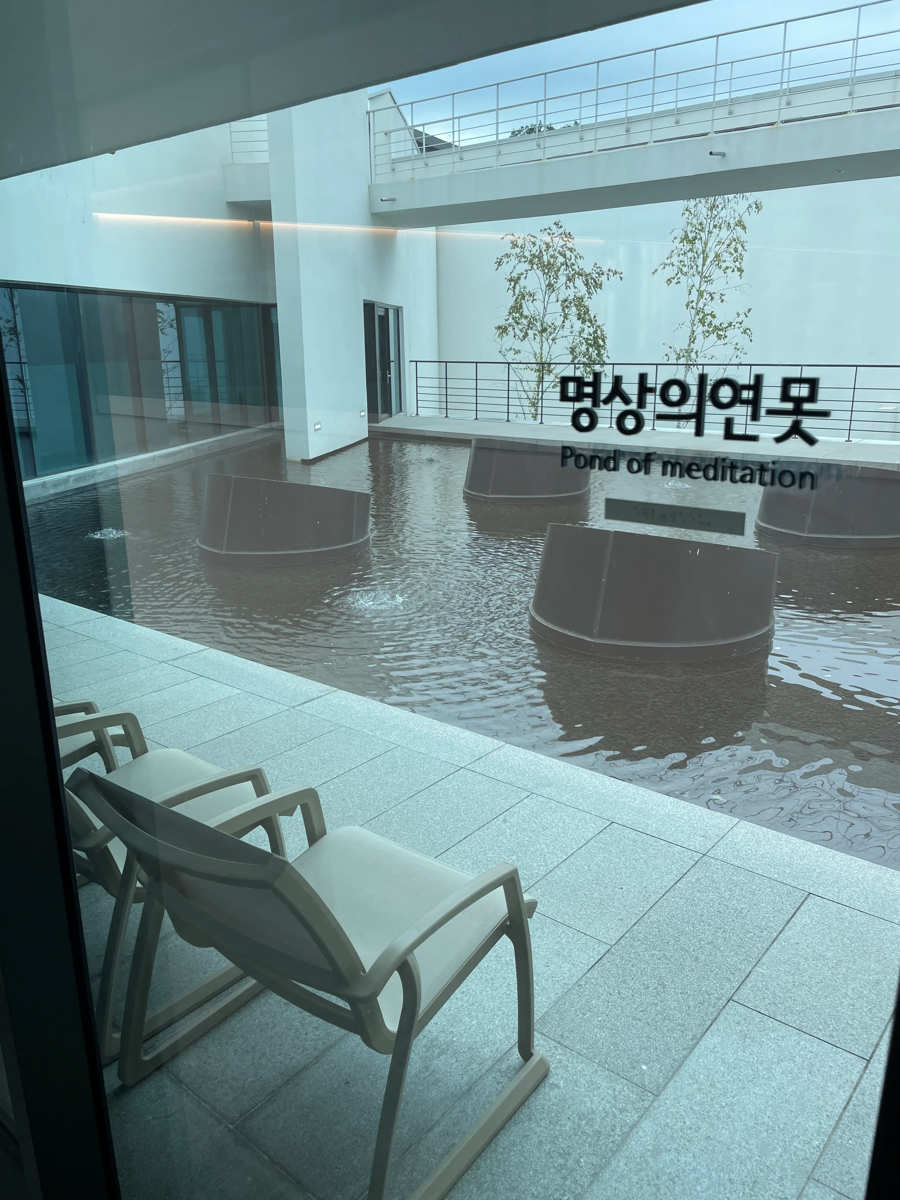 명상의 연못 역시 외부에 조성된 연못인데요, 이곳은 흐르는 물을 바라보며 물멍을 즐길 수 있는 공간입니다.