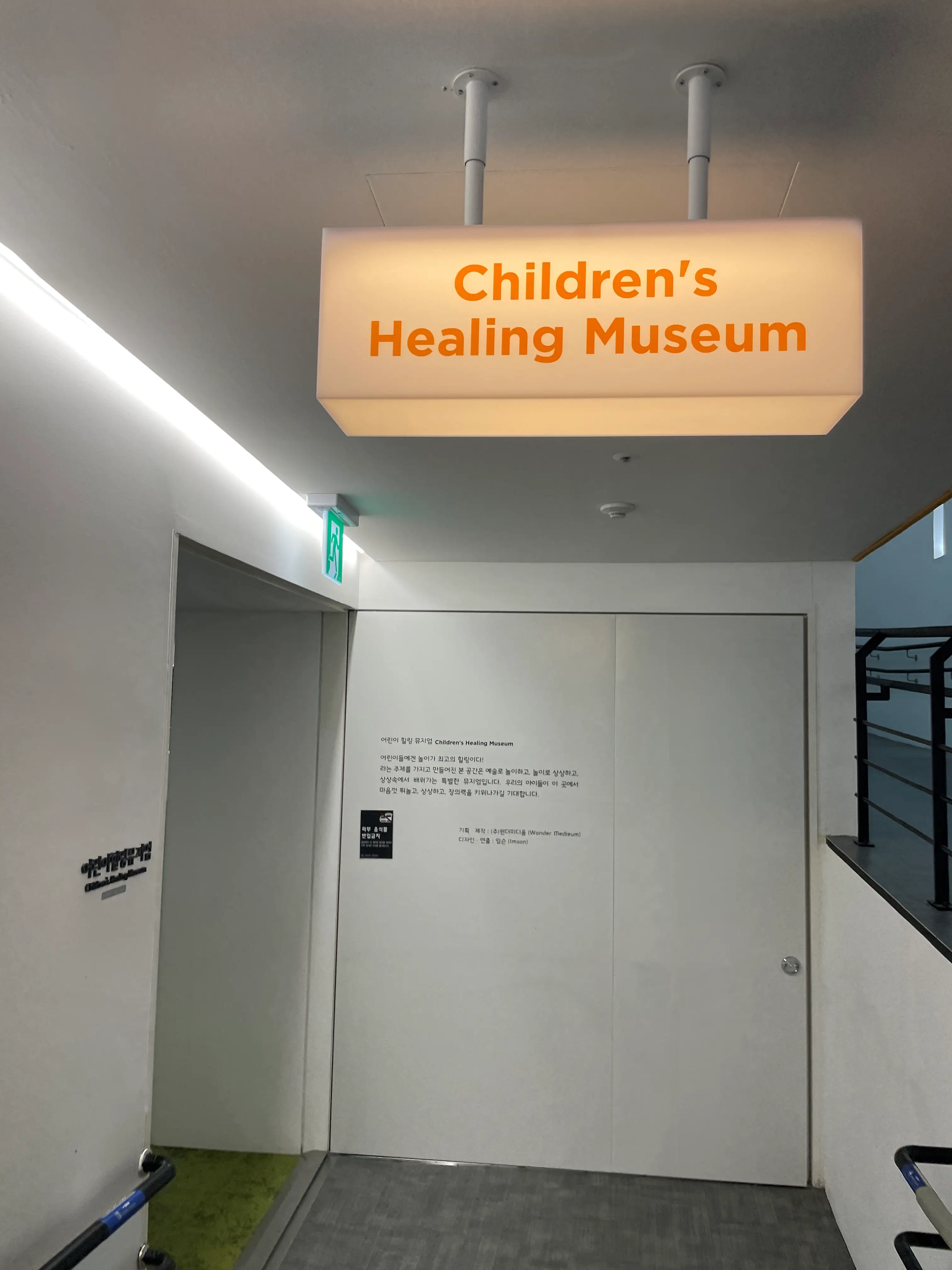 아까 보셨던 힐링숲정원 옆쪽에 보시면 지하2층으로 가는 경사로가 있는데, 이곳으로 따라 내려가면 어린이힐링뮤지엄이 있습니다.
