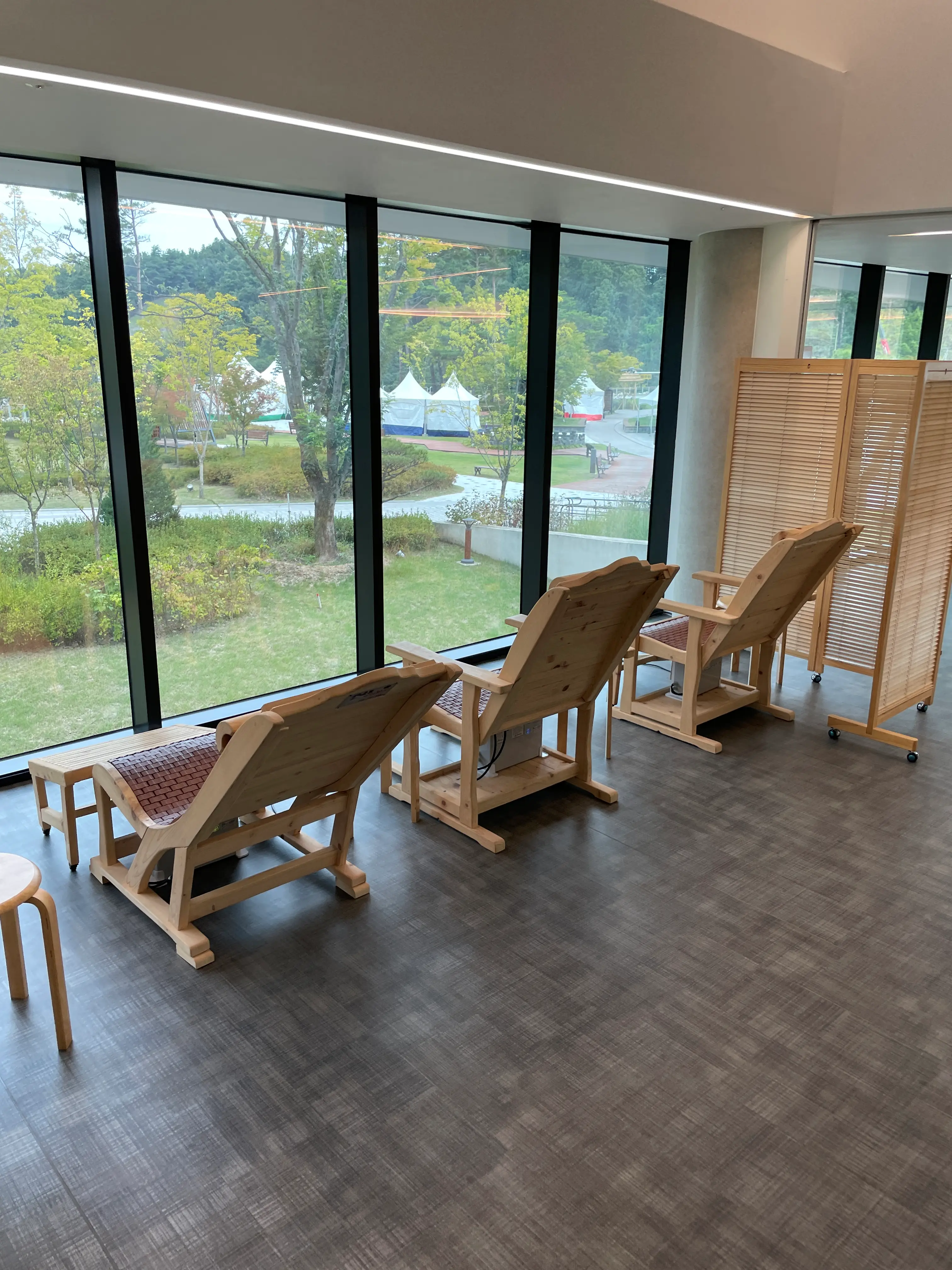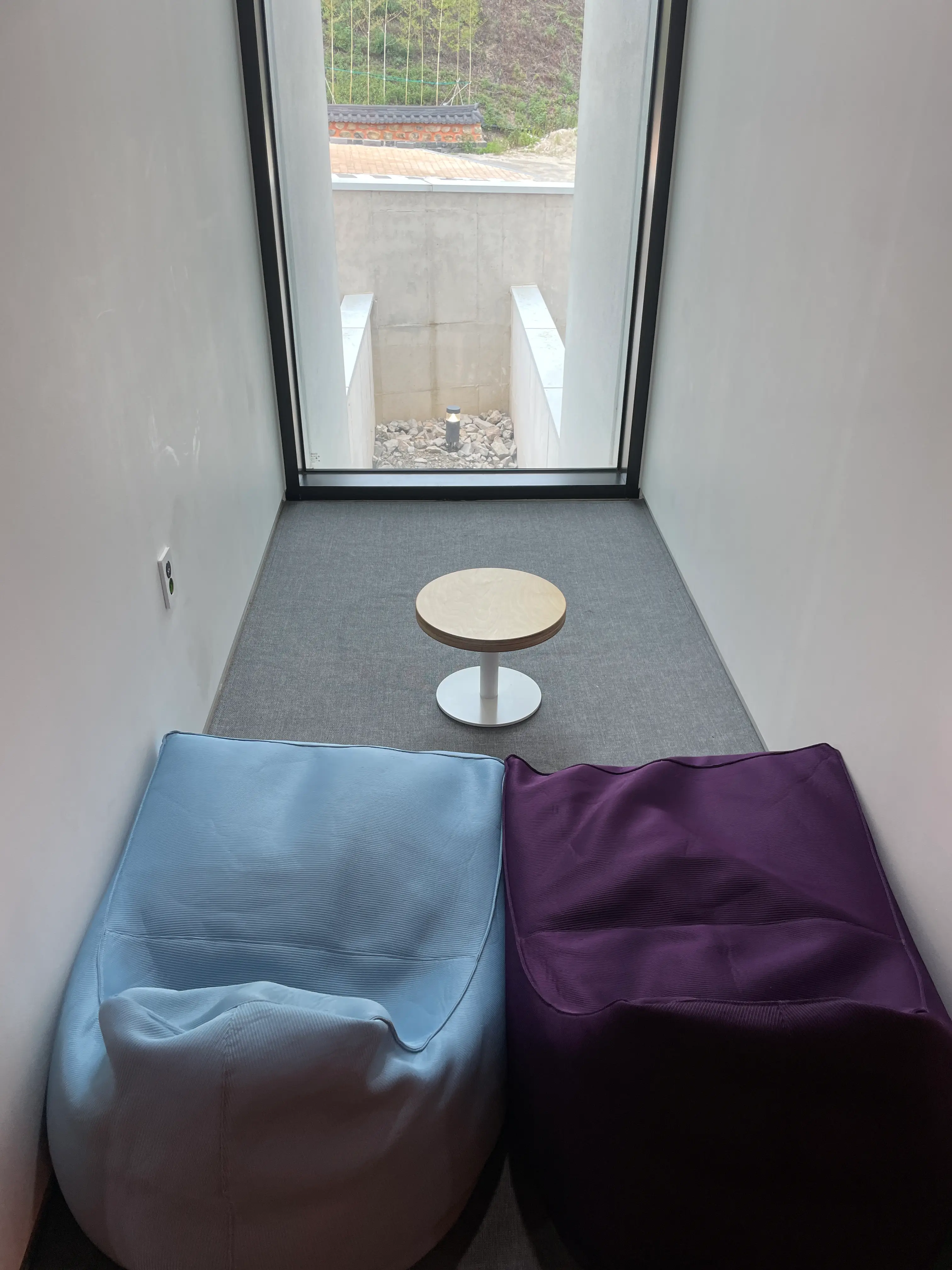 개인힐링존을 나오면 밖을 바라볼 수 있도록 설치된 의자도 있습니다! 원하시는 곳에서 푹 쉴 수 있는 공간이네요.