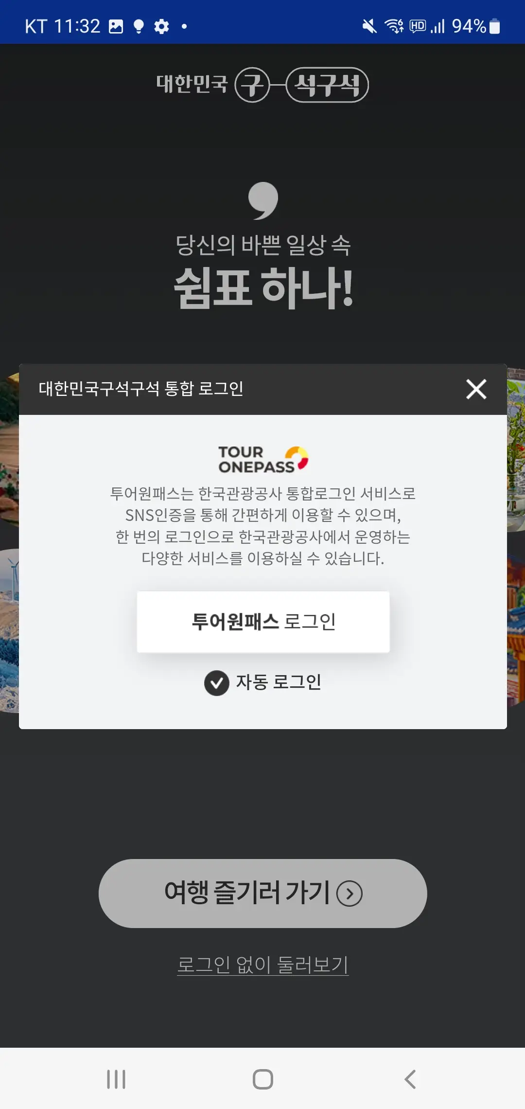 여행 즐기러 가기 - 투어원패스 로그인을 누르시면, 다양한 플랫폼을 이용해 로그인할 수 있습니다.