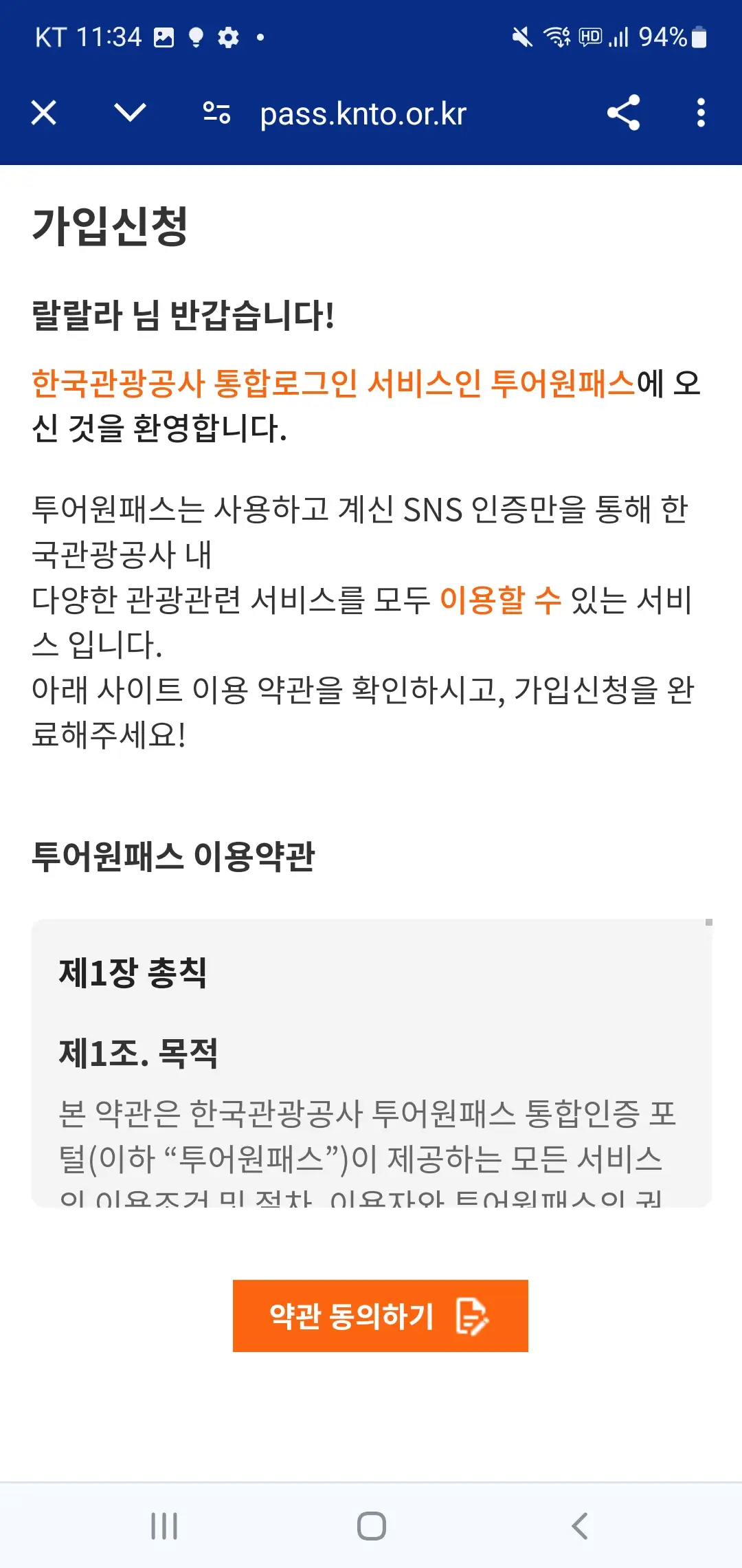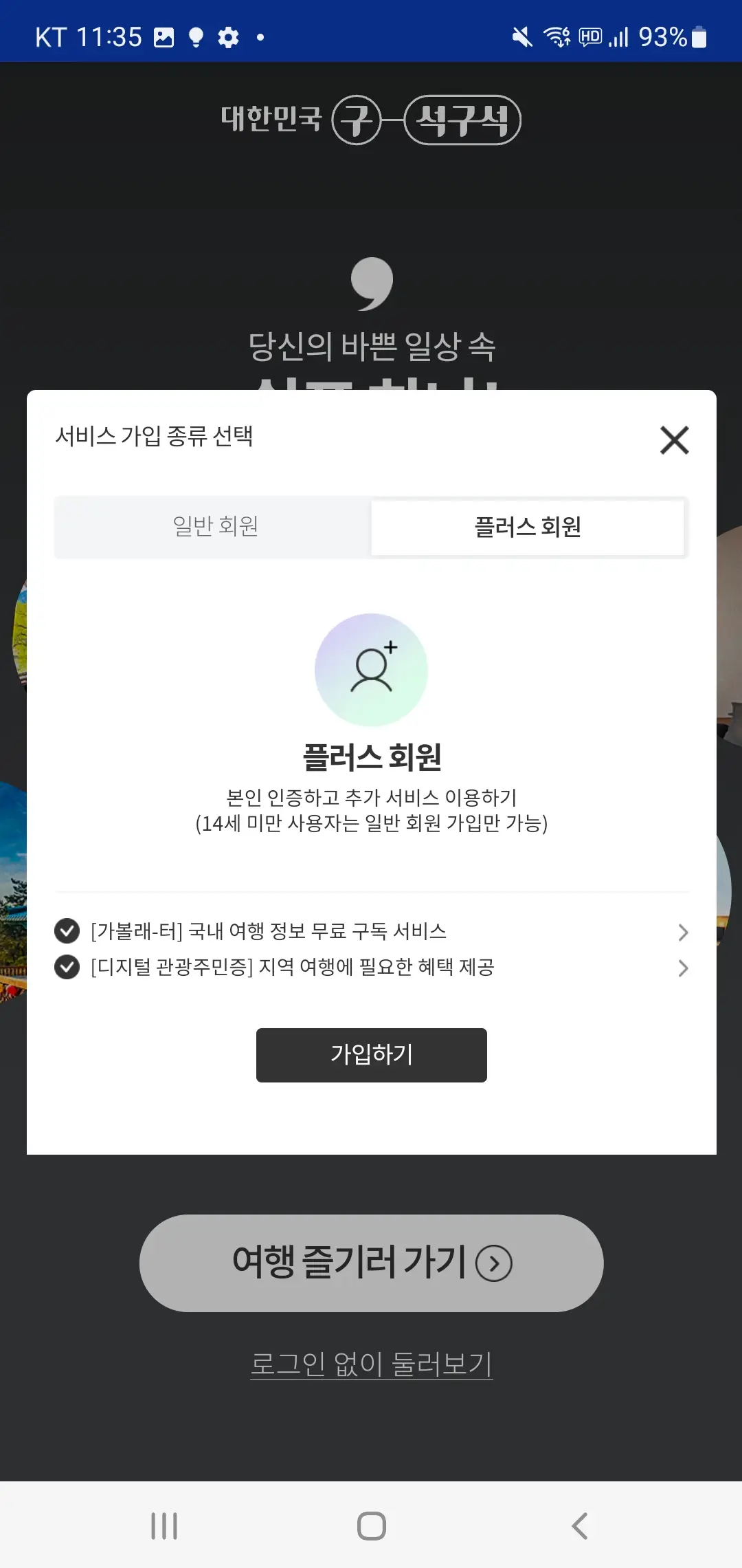 대한민국 구석구석 회원가입