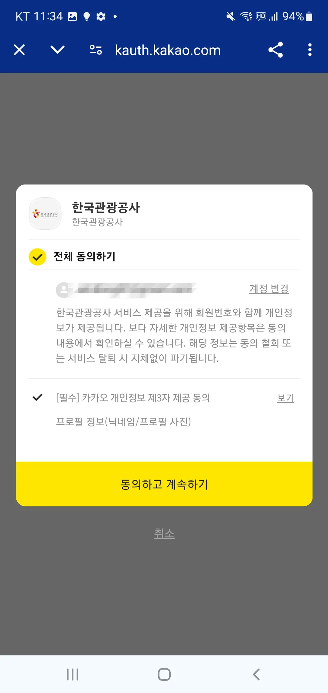 저는 카카오톡으로 연동하여 회원가입을 진행했습니다.